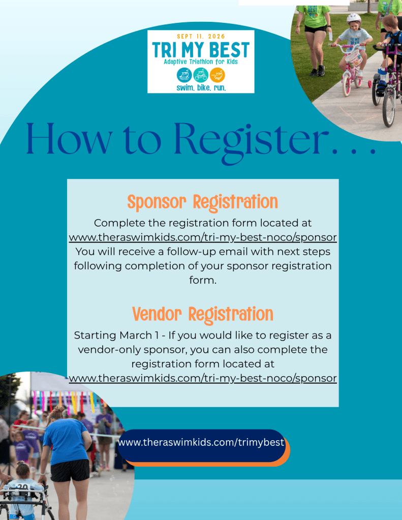 Your partnership with “Tri My Best” will not only showcase your commitment to supporting children with adaptive needs but will also provide your business with the opportunity to connect with a diverse and engaged community. Together, we can make this event a success and create lasting memories for the children and families who participate.