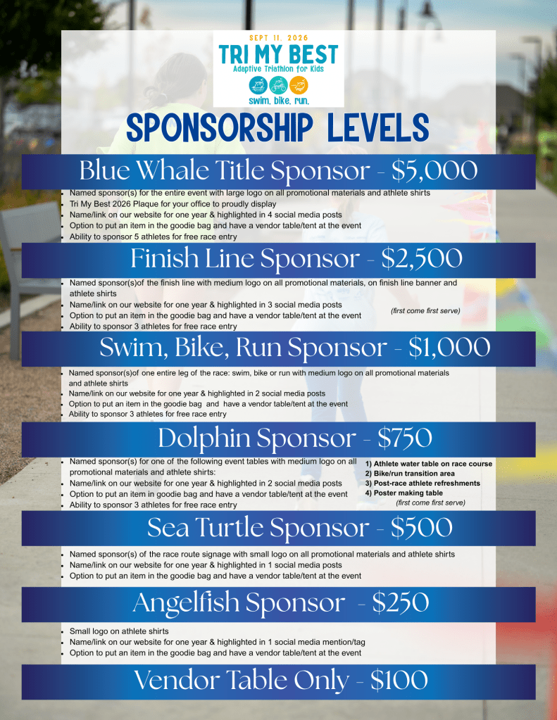 Thank you for considering being a sponsor for the 2026 Tri My Best!
